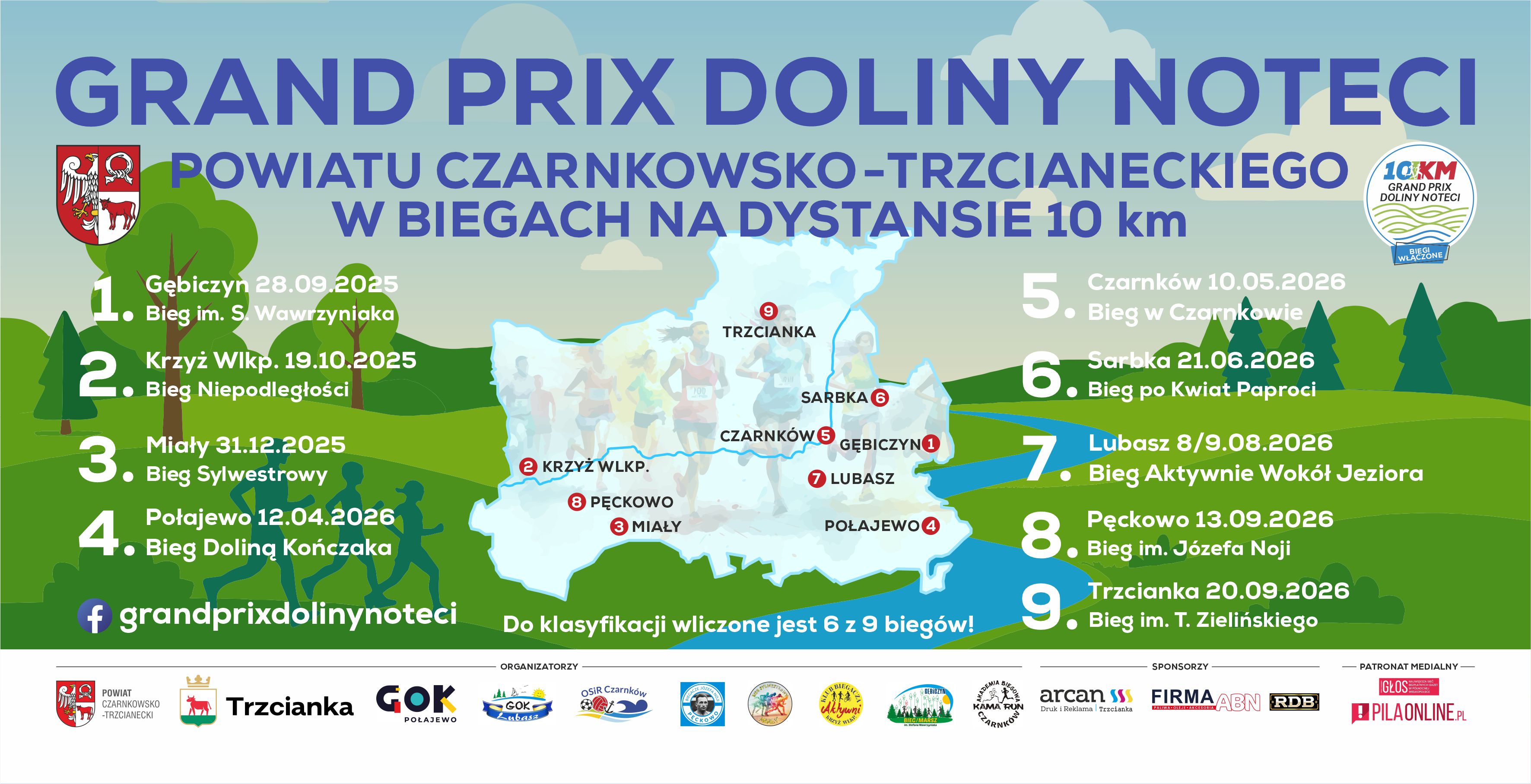 Grand Prix Doliny Noteci to pierwszy w Powiecie Czarnkowsko-Trzcianeckim cykl biegów na 10 km, do którego zalicza się 9 biegów - zaczynamy w pięknym Gębiczynie 28 września 2025 roku, a kończymy w Trzciance 20.09.2026 r.